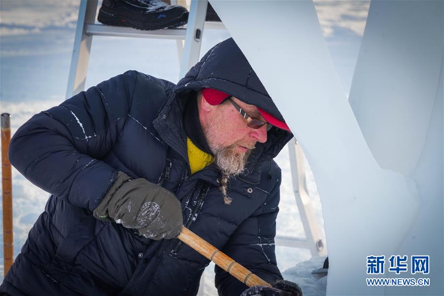 1月13日,參賽選手在哈爾濱太陽島雪博會園區(qū)創(chuàng)作雪雕。新華社記者王松攝