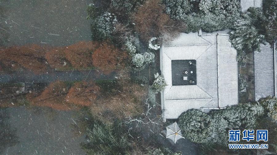 這是1月15日拍攝的合肥市包公園雪景(無人機(jī)照片)。 當(dāng)日,安徽省合肥市迎來降雪天氣。雪中的合肥市包公園景色別致。 新華社記者 張端 攝