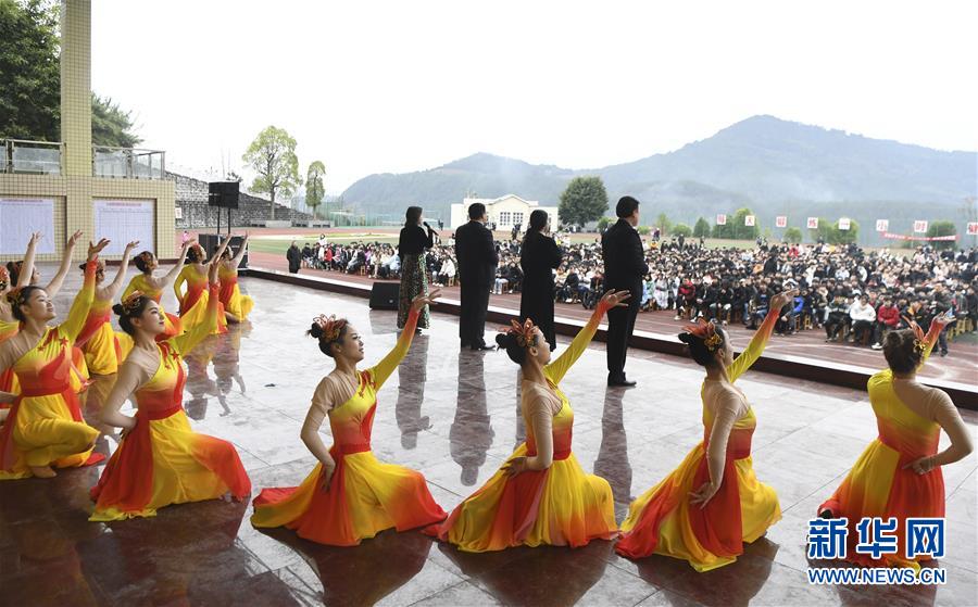 1月15日,中央歌劇院的歌唱家們在慰問演出中演唱。 當日,“我們的中國夢”——文化進萬家中央歌劇院文藝小分隊來到重慶市石柱土家族自治縣第一職業(yè)學校進行慰問演出,為學校的三千多名師生帶來了一場精彩的音樂大餐。 新華社記者 王全超 攝