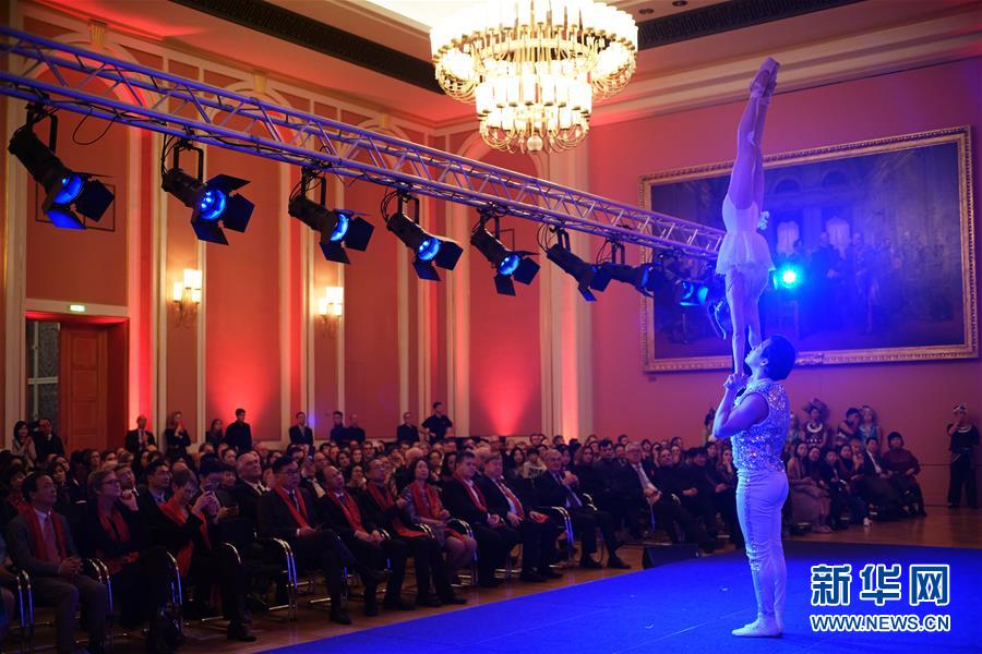 1月15日,在德國柏林,貴州省歌舞劇院藝術(shù)團(tuán)的演員在晚會(huì)上表演雜技。 15日晚,2020年“歡樂春節(jié)”新春文藝晚會(huì)在德國柏林的紅色市政廳上演,中德兩國各界代表觀看演出,共慶中國農(nóng)歷新年。 新華社記者 王勍 攝