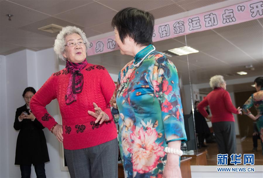 1月17日,王育華(左)向杭州市社會(huì)福利中心模特隊(duì)一名隊(duì)員請教如何擺姿勢。新華社記者 翁忻旸 攝