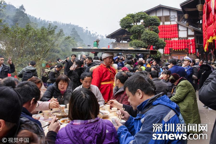 重慶:吃“千米長宴” 品古鎮(zhèn)年味
