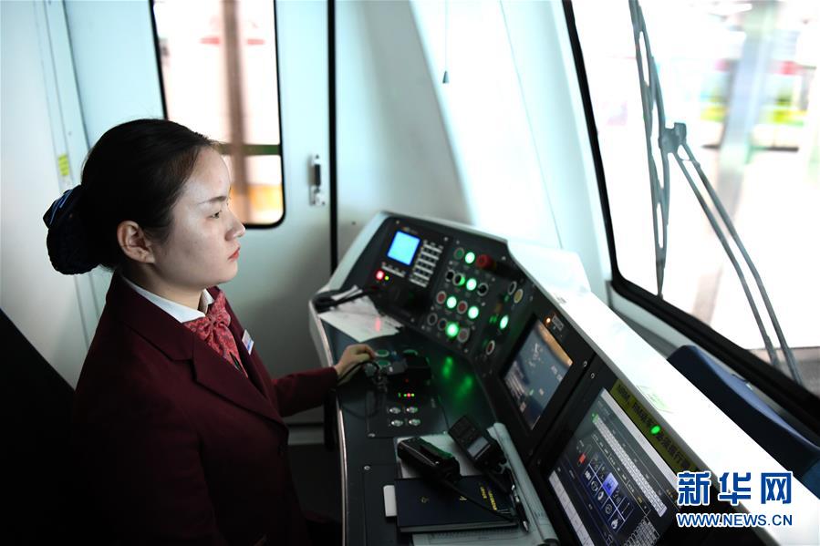 劉慧君在南寧軌道交通1號(hào)線上駕車行駛(1月16日攝)。