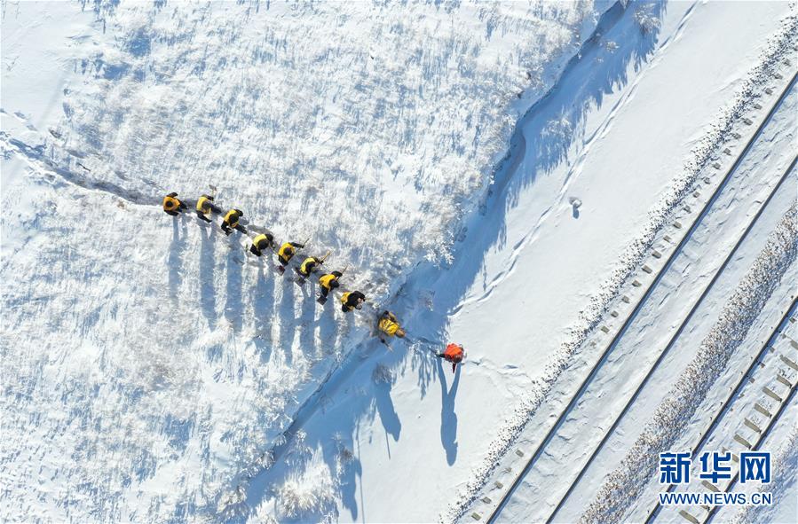 1月13日,白音庫(kù)倫綜合維修車間的職工來(lái)到作業(yè)點(diǎn)準(zhǔn)備工作(無(wú)人機(jī)照片)。新華社記者劉磊攝