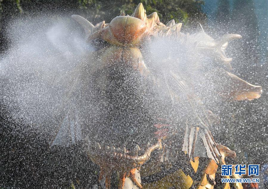 1月18日,大型機(jī)械裝置藝術(shù)品“龍馬精神”在珠海長隆海洋王國巡游展示。新華社記者 劉大偉 攝