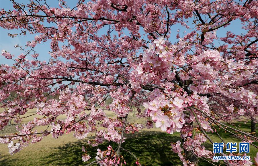 這是2月24日在上海松江辰山植物園內拍攝的河津櫻。 新華社記者 方喆 攝