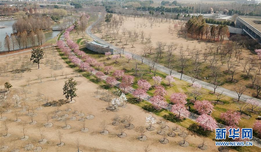 這是2月24日在上海松江辰山植物園內(nèi)拍攝的櫻花小徑(無人機照片)。 新華社記者 方喆 攝