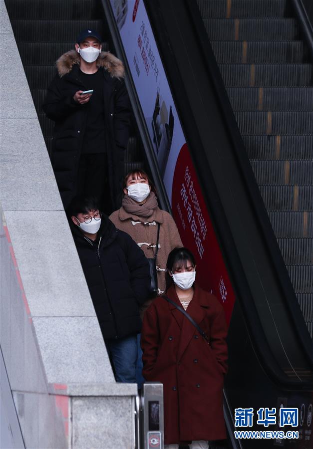 2月24日,在韓國首爾,當地居民乘坐自動扶梯。 新華社記者 王婧嬙 攝