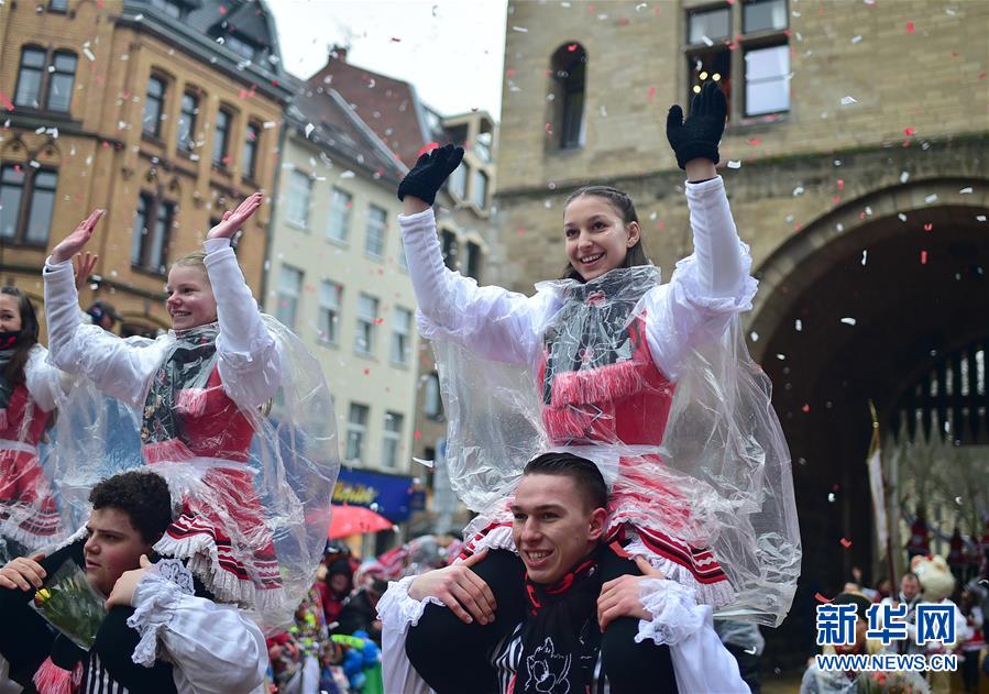 2月24日,在德國科隆,人們參加“玫瑰星期一”大游行。新華社記者 逯陽 攝