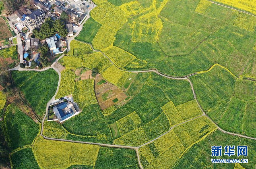 2月25日在四川省崇州市拍攝的油菜花田(無(wú)人機(jī)照片)。新華社記者王曦?cái)z