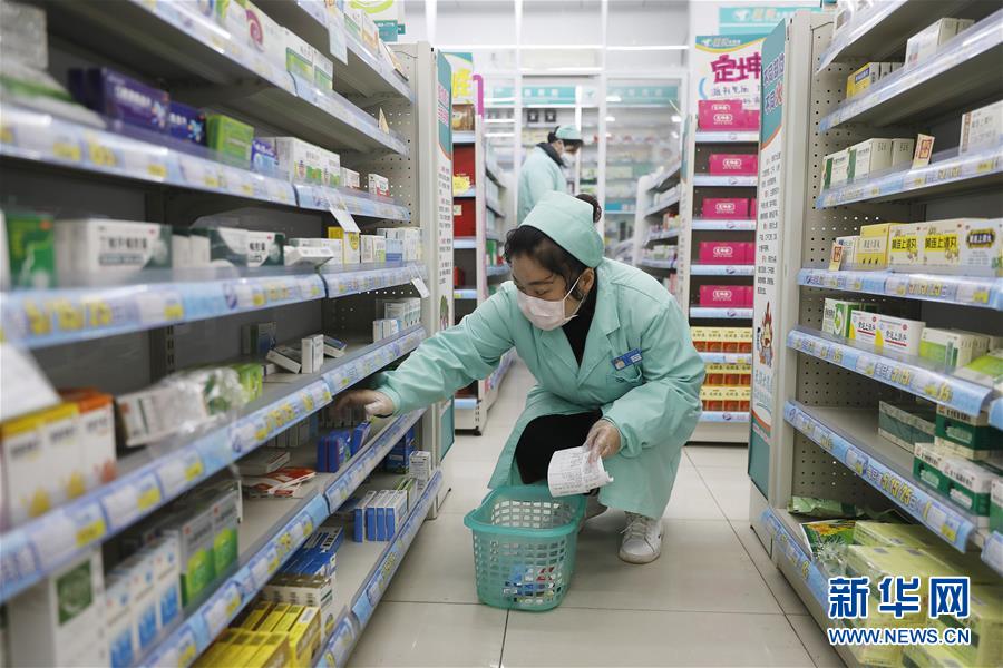 2月22日,王春波在藥店內為居民配藥。新華社記者熊琦攝