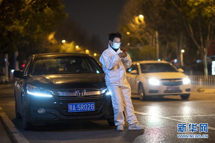 2月21日,王永朋在路邊等待,準備接單。這個春節(jié)王永朋沒回老家甘肅安陽,他報名擔任高德醫(yī)護專車志愿者,開著年前剛買的新車,免費接送醫(yī)護人員上下班。因為住在武漢新洲區(qū),距離江漢、武昌等老城區(qū)有相當一段車程,他每天早上6點就起床出車,晚上十一二點才能回家休息,一天接送幾十位醫(yī)護人員上下班。每次到達目的地,醫(yī)生和護士下車后做的第一件事,總是向他致謝,還有不少人硬要塞錢給他,穿著防護衣、戴著口罩和護目鏡的王永朋,每次都微笑著退回了。新華社記者熊琦攝