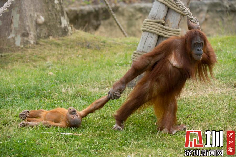 2020年2月27日報道(具體拍攝時間不詳),一只可愛的小猩猩玩著玩著,就被親媽拖著回家,像不像你媽喊你回家吃飯的樣子?攝影師 Koen Hartkamp在比利時 Pairi Daiza動物園參觀時,記錄了一堆猩猩母子的有趣互動。當(dāng)時三歲的 Berani正獨自在戶外玩耍,不一會它的媽媽 Sari就找來了,一把拖著娃從草地上回到家門口,然后立刻送上擁抱和親吻,原來猩媽媽是想孩子了呀!