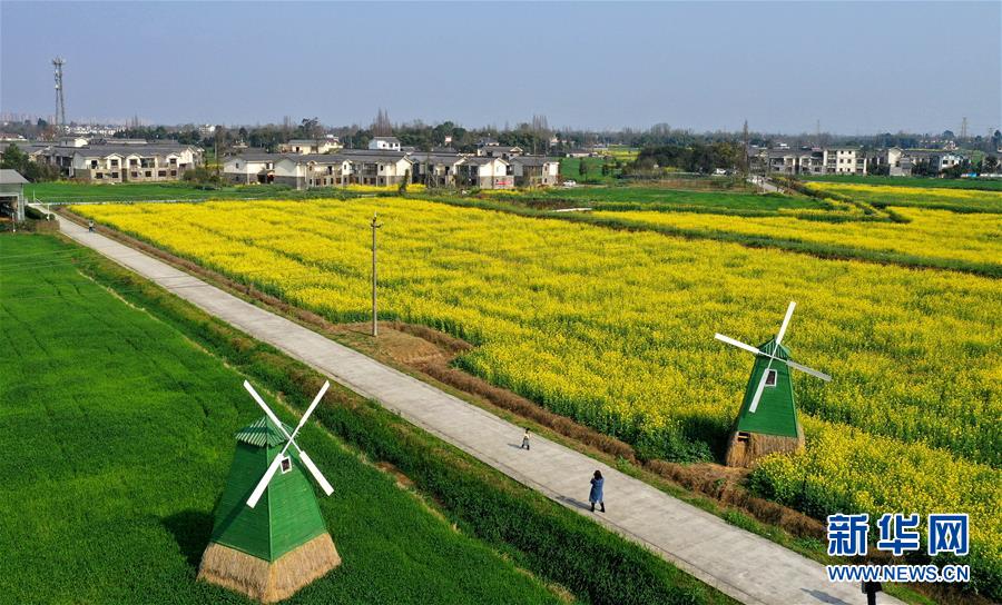 2月25日在四川省崇州市農(nóng)業(yè)產(chǎn)業(yè)功能區(qū)拍攝的油菜花田(無人機(jī)照片)。初春時(shí)節(jié),正值農(nóng)時(shí)。成都平原西部的大邑、崇州等縣市油菜長(zhǎng)勢(shì)良好,一片生機(jī)盎然的景象。新華社記者王曦?cái)z