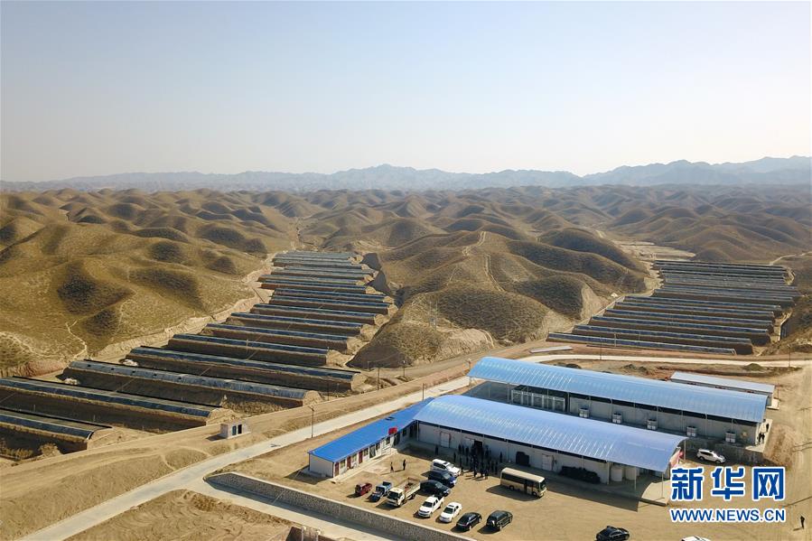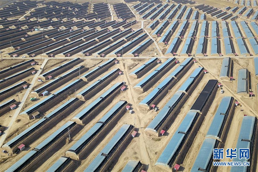 這是3月4日在靖遠縣石門鄉(xiāng)路莊村易地扶貧搬遷搬入地——三灘鎮(zhèn)銀灘村拍攝的香菇大棚(無人機照片)。新華社記者 范培珅 攝