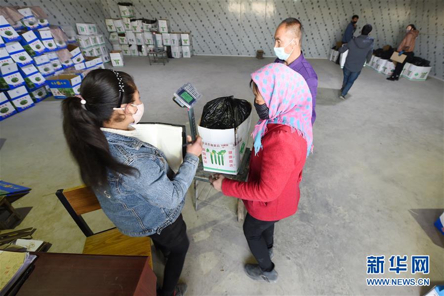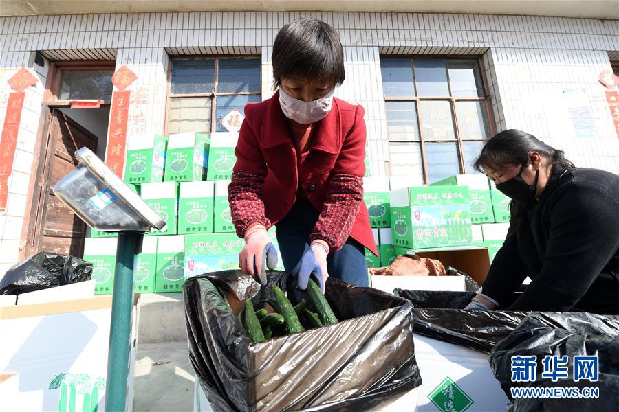 3月4日,在靖遠縣北灣鎮(zhèn),農(nóng)民將黃瓜稱重裝箱。新華社記者 范培珅 攝