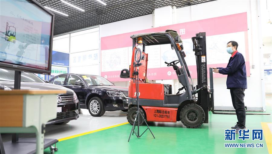 3月4日,職教城內(nèi)的鞍山市交通運(yùn)輸學(xué)校的楊永祥老師為學(xué)生進(jìn)行物流叉車實(shí)訓(xùn)網(wǎng)絡(luò)授課。遼寧省鞍山市職教城內(nèi)的各類職業(yè)教育學(xué)校從3月2日恢復(fù)網(wǎng)絡(luò)授課以來,教師們?cè)O(shè)置了豐富多彩的課程,提高1萬余名學(xué)生線上學(xué)習(xí)的積極性。新華社記者 姚劍鋒 攝