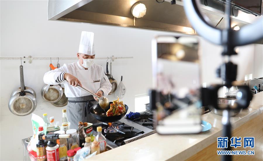 3月4日,職教城內(nèi)的鞍山市現(xiàn)代服務(wù)學(xué)校的李崇老師為學(xué)生進(jìn)行遼菜烹飪實(shí)訓(xùn)網(wǎng)絡(luò)授課。遼寧省鞍山市職教城內(nèi)的各類職業(yè)教育學(xué)校從3月2日恢復(fù)網(wǎng)絡(luò)授課以來,教師們?cè)O(shè)置了豐富多彩的課程,提高1萬余名學(xué)生線上學(xué)習(xí)的積極性。新華社記者 姚劍鋒 攝