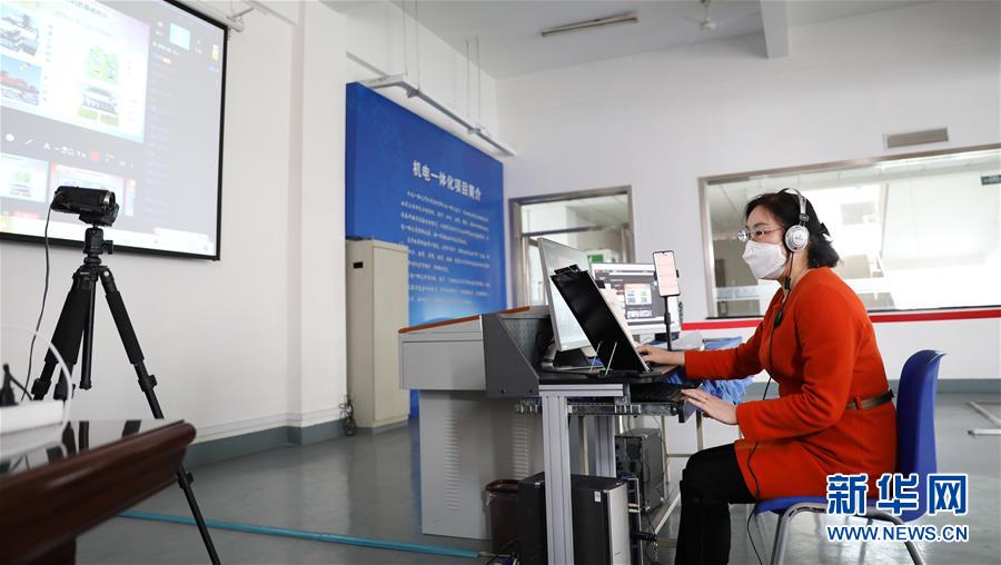 3月4日,職教城內(nèi)的鞍山市技師學(xué)院的王曉娜老師為學(xué)生進(jìn)行機(jī)電一體化網(wǎng)絡(luò)授課。遼寧省鞍山市職教城內(nèi)的各類職業(yè)教育學(xué)校從3月2日恢復(fù)網(wǎng)絡(luò)授課以來,教師們設(shè)置了豐富多彩的課程,提高1萬余名學(xué)生線上學(xué)習(xí)的積極性。新華社記者 姚劍鋒 攝