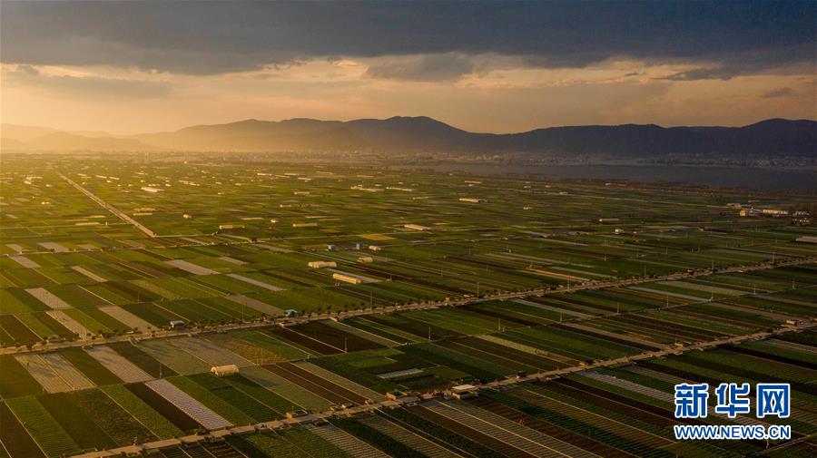 時下正值農忙時節(jié),云南省玉溪市通??h的農作物長勢喜人,山巒、湖水與農田組成了一幅美麗的田園詩畫卷。
