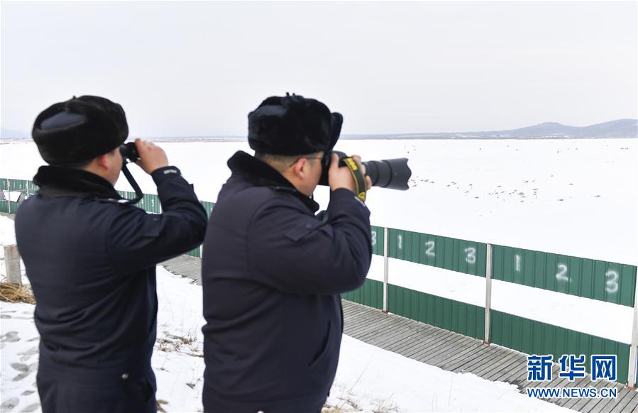 為保障候鳥在敬信濕地逗留期間的安全,琿春森林公安局基層民警奮戰(zhàn)在護鳥一線,積極加大巡護力度,在風(fēng)雪天氣為候鳥投放糧食,嚴打獵捕候鳥違法犯罪,確保候鳥遷徙通道安全。新華社記者 許暢 攝