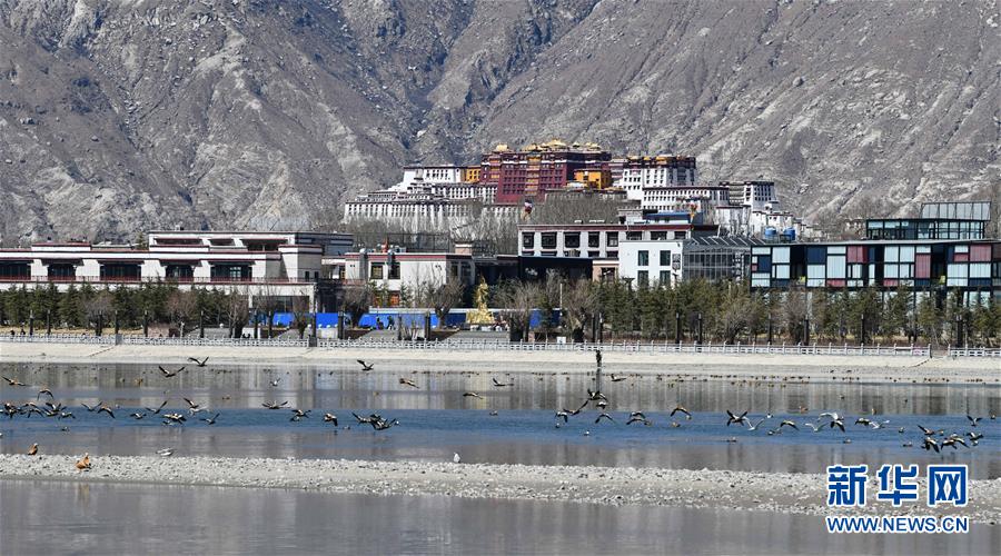 拉薩河上水鳥(niǎo)飛翔(3月10日攝)。 隨著氣候回暖,西藏的春天悄然到來(lái)。在“日光城”拉薩,高原大地從寒冬中漸漸醒來(lái)。 新華社記者 晉美多吉 攝