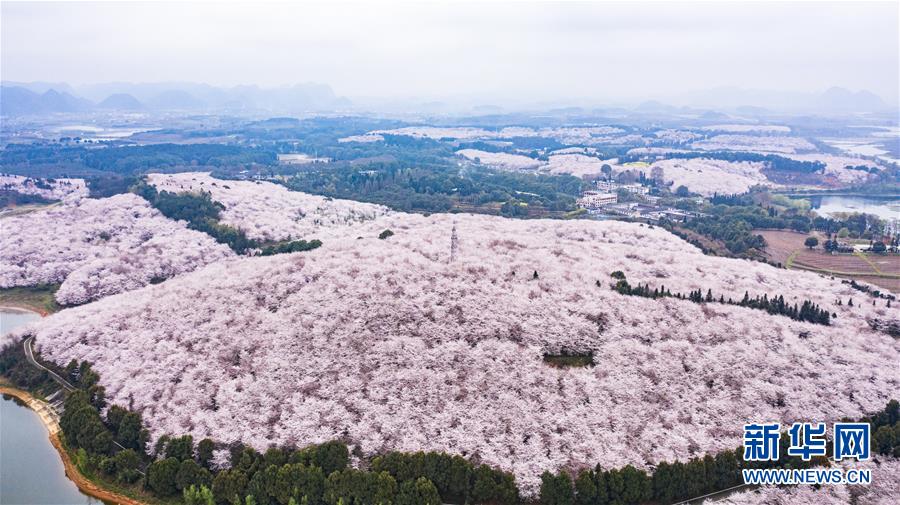3月12日拍攝的貴安新區(qū)櫻花觀光園風(fēng)景(無人機(jī)照片)。 近日,貴州省貴安新區(qū)櫻花觀光園內(nèi)櫻花競(jìng)相盛開,花團(tuán)錦簇間春意盎然。據(jù)介紹,疫情防控期間,為避免人群聚集,櫻花園暫不接待游客。 新華社記者 陶亮 攝
