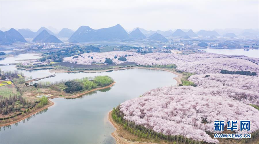 3月12日拍攝的貴安新區(qū)櫻花觀光園風(fēng)景(無人機(jī)照片)。 近日,貴州省貴安新區(qū)櫻花觀光園內(nèi)櫻花競相盛開,花團(tuán)錦簇間春意盎然。據(jù)介紹,疫情防控期間,為避免人群聚集,櫻花園暫不接待游客。 新華社記者 陶亮 攝