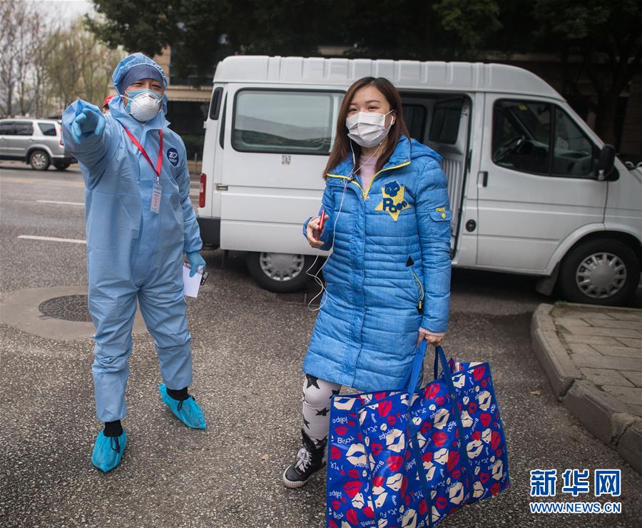 3月12日,黎婧(右)到達(dá)小區(qū)后激動不已。 3月12日,插畫師黎婧和84位病友離開自己居住的武漢軟件工程職業(yè)學(xué)院康復(fù)驛站,回到自己家中。他們都是治愈出院的新冠病毒肺炎患者,已經(jīng)在武漢軟件工程職業(yè)學(xué)院康復(fù)驛站進(jìn)行了14天醫(yī)學(xué)觀察,達(dá)到醫(yī)學(xué)標(biāo)準(zhǔn),成功解除隔離。他們由專車運送至所屬社區(qū)附近的集散點后,在社區(qū)工作人員的陪同下回家。 新華社記者 肖藝九 攝
