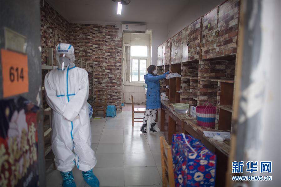 3月12日,黎婧在收拾行李準(zhǔn)備出發(fā),志愿者在門旁等候。 3月12日,插畫師黎婧和84位病友離開自己居住的武漢軟件工程職業(yè)學(xué)院康復(fù)驛站,回到自己家中。他們都是治愈出院的新冠病毒肺炎患者,已經(jīng)在武漢軟件工程職業(yè)學(xué)院康復(fù)驛站進行了14天醫(yī)學(xué)觀察,達到醫(yī)學(xué)標(biāo)準(zhǔn),成功解除隔離。他們由專車運送至所屬社區(qū)附近的集散點后,在社區(qū)工作人員的陪同下回家。 新華社記者 肖藝九 攝
