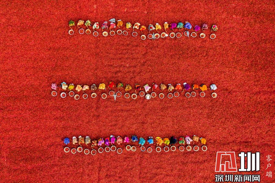 航拍孟加拉國工人分揀辣椒 滿眼火紅大地如鋪上地毯