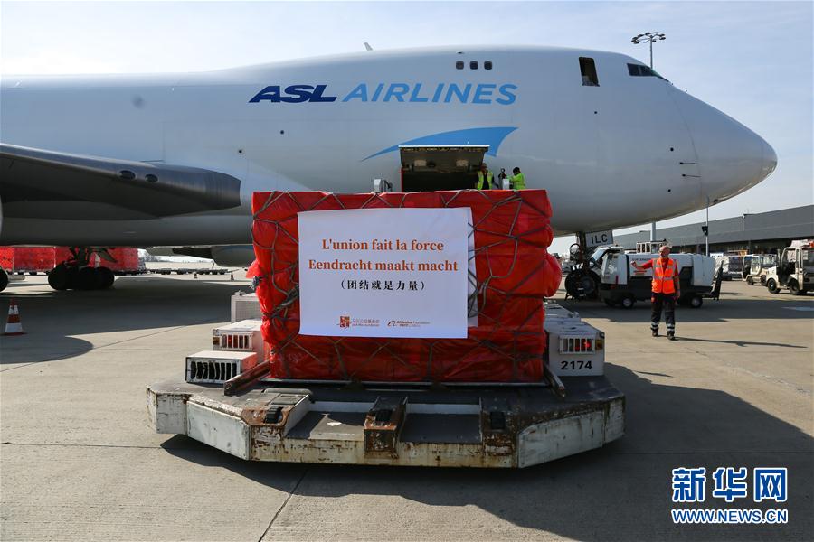 來自中國的30萬只口罩當?shù)貢r間16日中午運抵比利時列日機場。 新華社記者 張鋮 攝