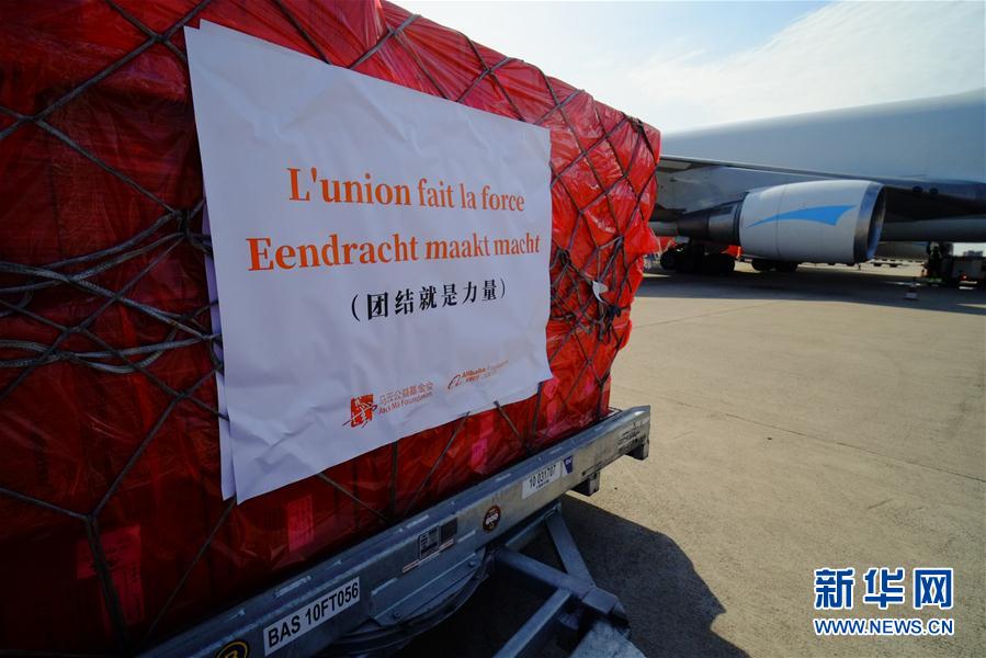 來自中國的30萬只口罩當?shù)貢r間16日中午運抵比利時列日機場。 新華社記者 張鋮 攝