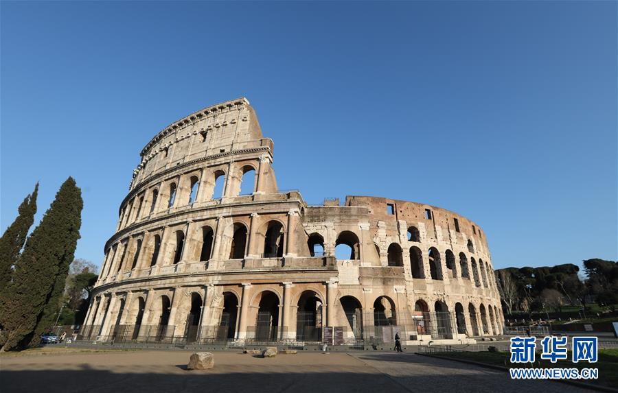 3月16日,在意大利首都羅馬,斗獸場因疫情關(guān)閉。新華社記者程婷婷攝