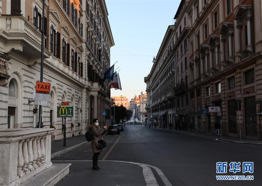 3月16日,在意大利首都羅馬,威尼斯廣場前行人寥寥。新華社記者程婷婷攝