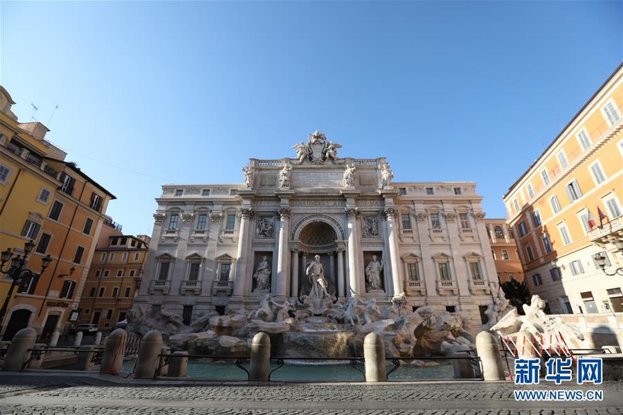 3月16日,在意大利首都羅馬,因疫情關(guān)閉的許愿池前無游人。新華社記者程婷婷攝