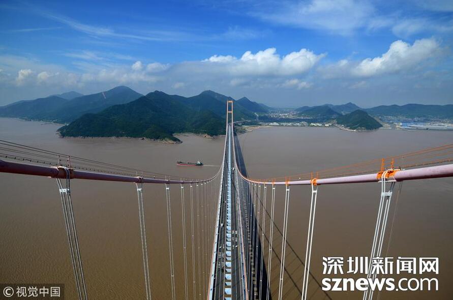 【跨度最大的懸索橋——西堠門大橋】西堠門大橋跨徑1650米,是連接舟山本島與寧波的舟山連島工程五座跨海大橋中技術(shù)要求最高的特大型跨海橋梁。西堠門大橋工程完工后使舟山交通納入長江三角洲的高速公路網(wǎng)絡(luò),有利于舟山港口資源的開發(fā),有力推動(dòng)了寧波——舟山港口一體化進(jìn)程,在環(huán)杭州灣地區(qū)、長三角地區(qū)經(jīng)濟(jì)發(fā)展中發(fā)揮著重要作用。