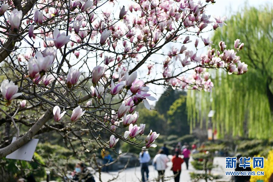 3月18日拍攝的百花公園內(nèi)盛開的玉蘭花。