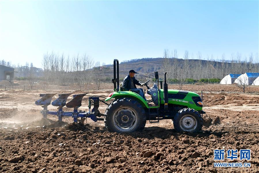 3月18日,在中國(guó)鐵路太原局集團(tuán)有限公司新創(chuàng)云竹生態(tài)農(nóng)業(yè)園,農(nóng)民在用農(nóng)機(jī)犁地。