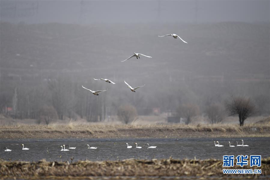 這是3月18日在準(zhǔn)格爾旗大路鎮(zhèn)的黃河淺灘上拍攝的候鳥。 新華社記者 于嘉 攝