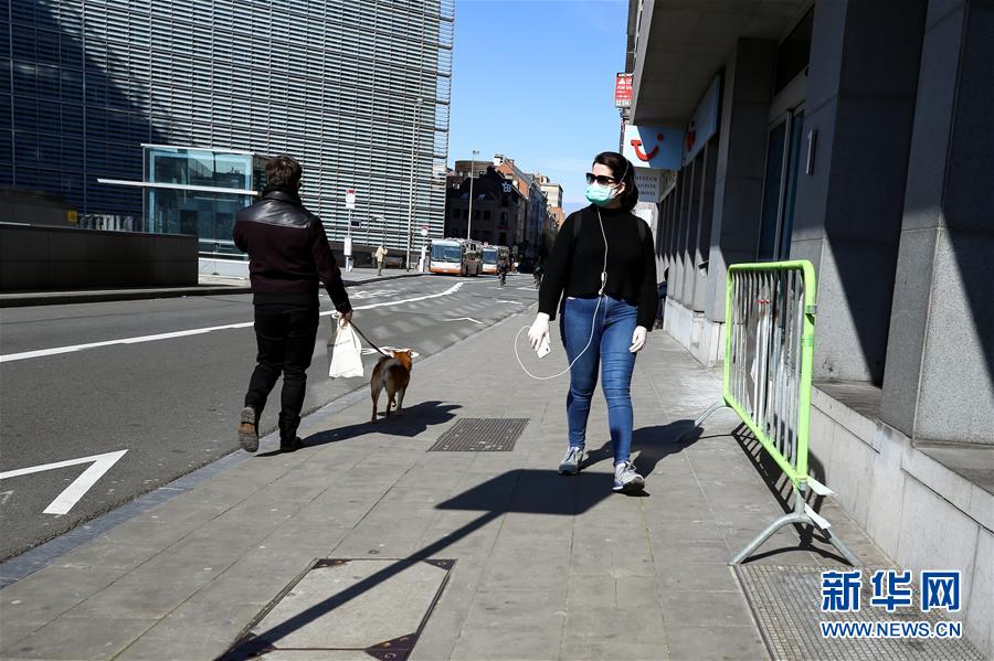 3月18日,在比利時布魯塞爾,佩戴口罩的行人走在馬路上。 截至17日,比利時累計確診新冠肺炎病例1243例,死亡10例,治愈出院15例。比利時首相維爾梅斯當(dāng)天宣布,從18日12時起全國范圍內(nèi)將實施“封城”,結(jié)束時間暫定為4月5日。根據(jù)全國安全委員會特別會議決定,除上下班,購買食品、藥品、就醫(yī)等特定情況外,全國民眾必須待在家中;有條件的企業(yè)必須進行遠(yuǎn)程辦公。 新華社記者 張鋮 攝