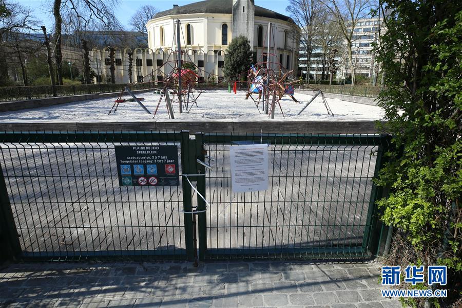 這是3月18日在比利時(shí)布魯塞爾拍攝的一處關(guān)閉的運(yùn)動(dòng)場。 新華社記者 張鋮 攝