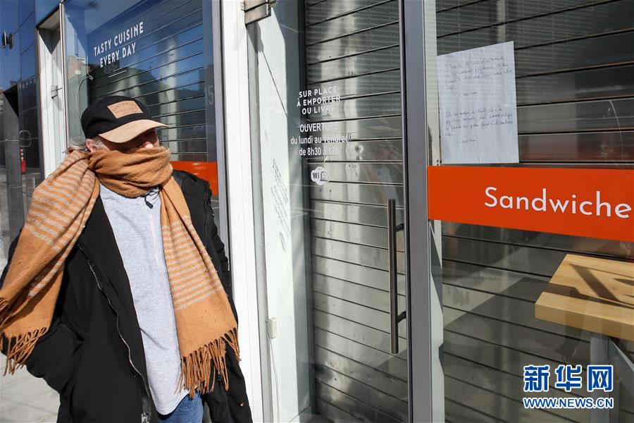 3月18日,在比利時布魯塞爾,一名男子查看快餐店張貼的關(guān)閉告示。 新華社記者 張鋮 攝