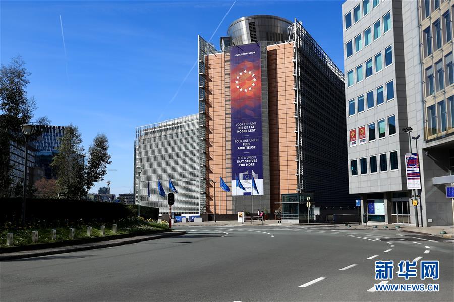 3月18日,在比利時(shí)布魯塞爾,舒曼廣場(chǎng)行人寥寥。 新華社記者 張鋮 攝