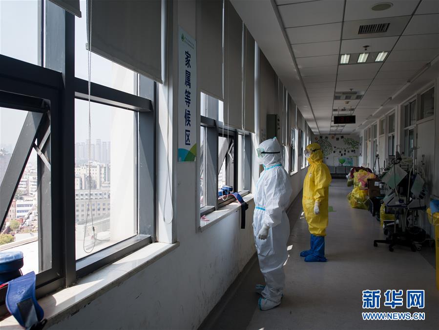 3月19日,在武漢市肺科醫(yī)院隔離病房,醫(yī)護(hù)人員在窗邊小憩。 新華社記者 肖藝九 攝