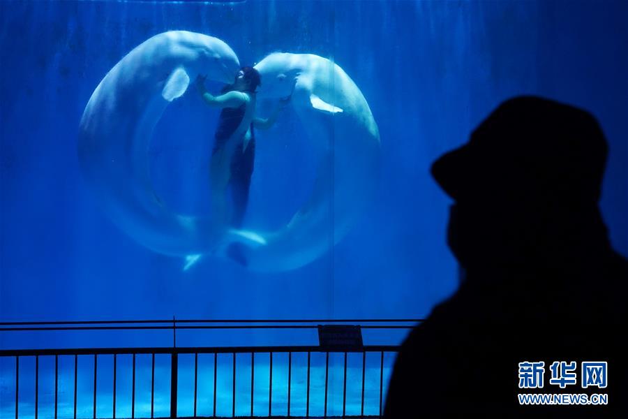 3月23日,游客在哈爾濱極地館觀賞白鯨表演。當(dāng)日,哈爾濱極地館恢復(fù)營業(yè)。目前,極地館日接待人數(shù)不超過400人,園區(qū)采取分時段、間隔性辦法安排游客有序入園。游客實(shí)名預(yù)訂門票,入園要配合測溫、佩戴口罩、掃描“龍江健康碼”,刷身份證入館。新華社記者王建威攝