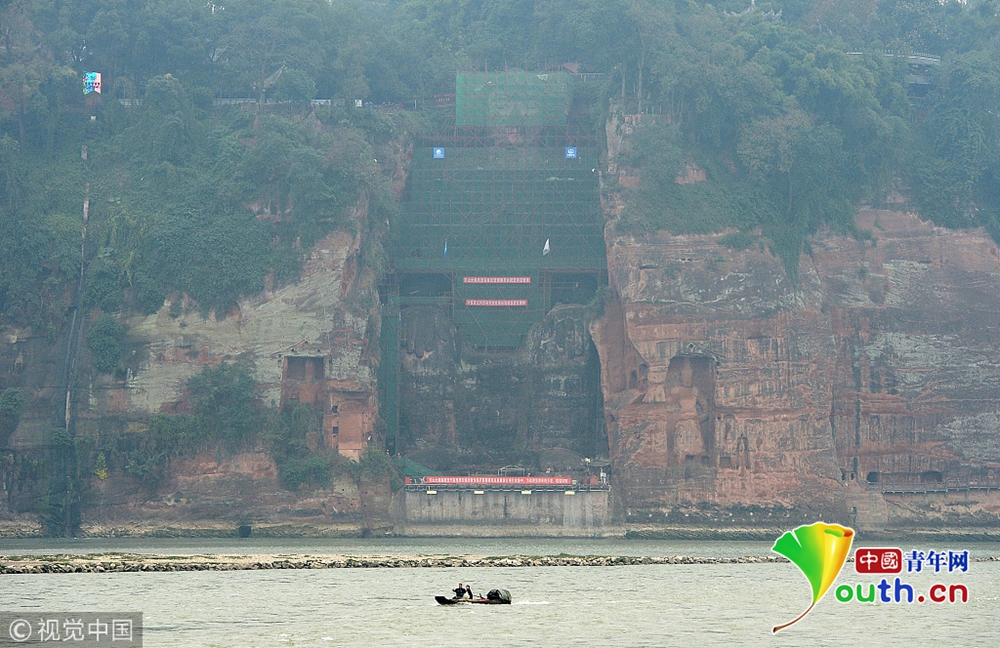 12月10日前后已逐步遮蔽大佛頭部,對頭面部進行勘測;12月底將開始拆除頭部腳手架,保證2019年元旦節(jié)之前,先露出佛頭,供游客觀賞。