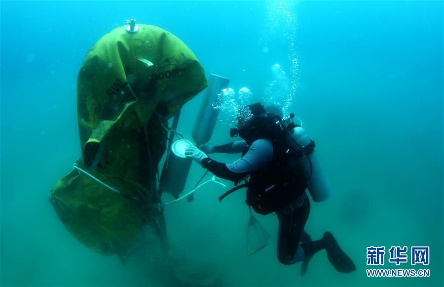 在位于海南三亞蜈支洲島旅游區(qū)的海洋牧場,工作人員在為浮力袋充氣后,浮力袋帶著固定好的人工魚礁上浮(3月27日攝)。近日,位于海南三亞蜈支洲島旅游區(qū)的海洋牧場復工,海底作業(yè)逐漸恢復正常,開始進行人工魚礁吊裝擺位、水下監(jiān)控清理以及日常巡護等工作。據(jù)介紹,人工魚礁有利于魚類種類增加和數(shù)量提高,蜈支洲島海域海洋牧場人工魚礁表面附著珊瑚、貝類、藻類等生物種類達120余種。新華社記者楊冠宇攝