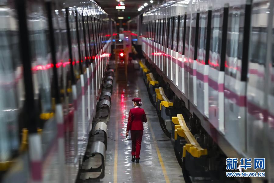 3月28日,武漢地鐵運營有限公司司機吳亞在常青車輛段檢查車輛情況。