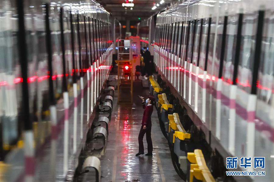 3月28日,武漢地鐵運(yùn)營有限公司司機(jī)吳亞在常青車輛段巡視車輛內(nèi)部情況。新華社記者沈伯韓攝